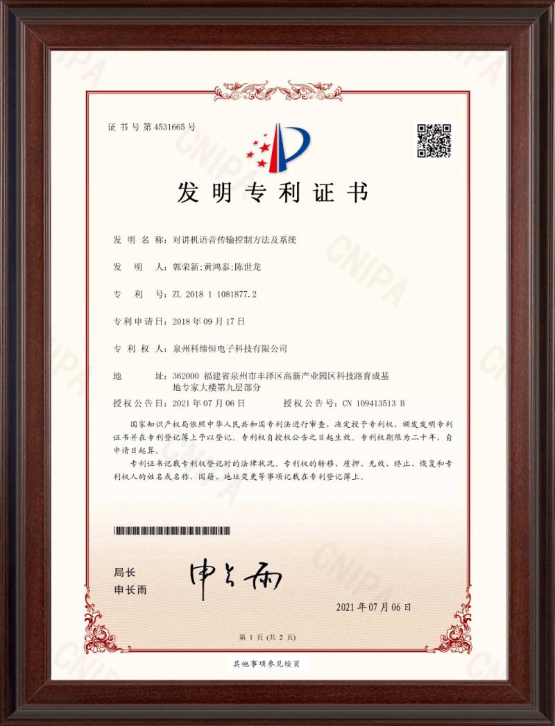 發(fā)明專利(對講機語音傳輸控制方法及系統(tǒng))